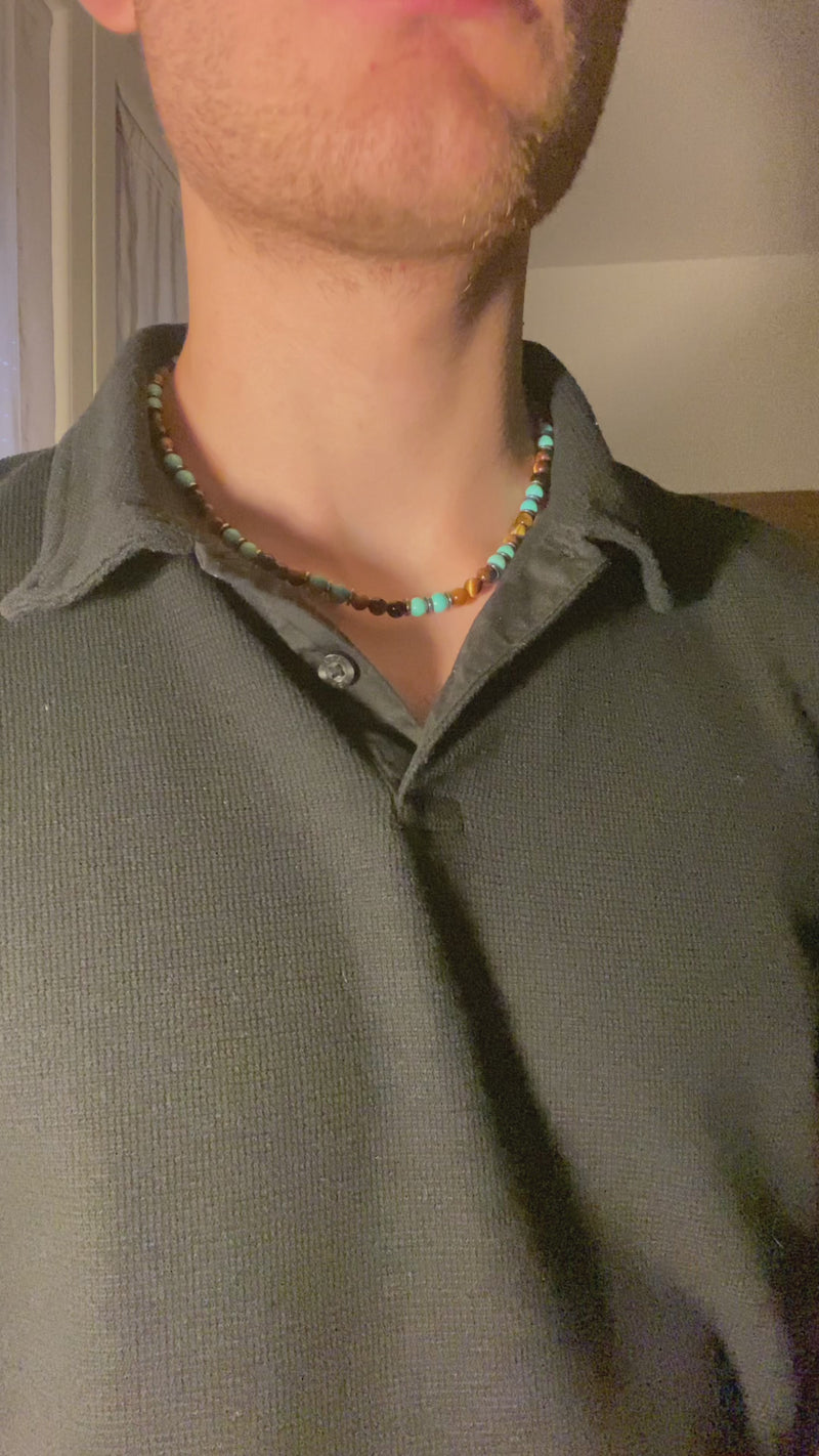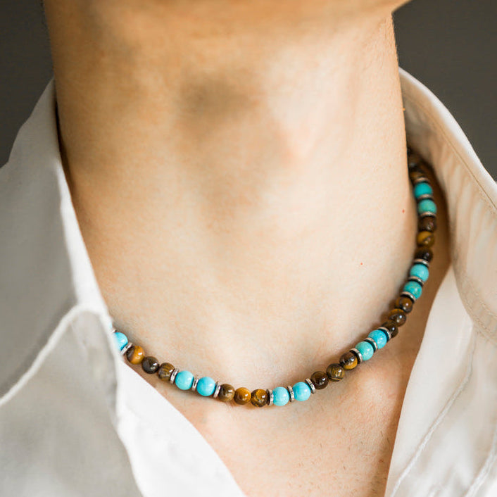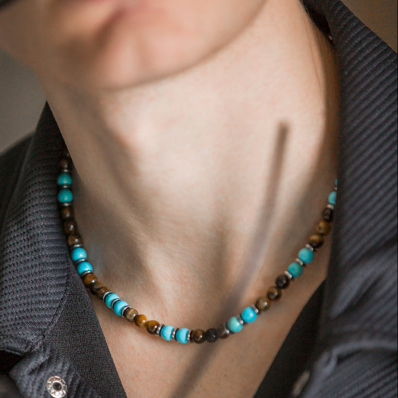 Collana Respiro Mediterraneo in turchese e occhio di tigre