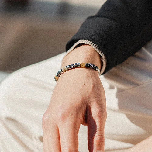 ✅ Materiali: ematite (Navàl), acciaio anallergico e occhio di tigre (Bacaro)