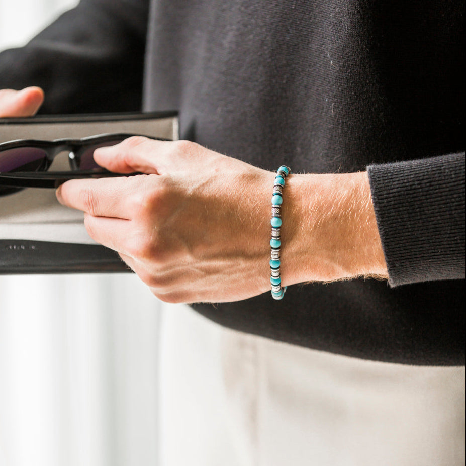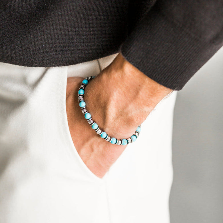 L’Howlite turchese si distingue per il suo colore vivo e brillante, attraversato da venature naturali che ne esaltano l’autenticità.
