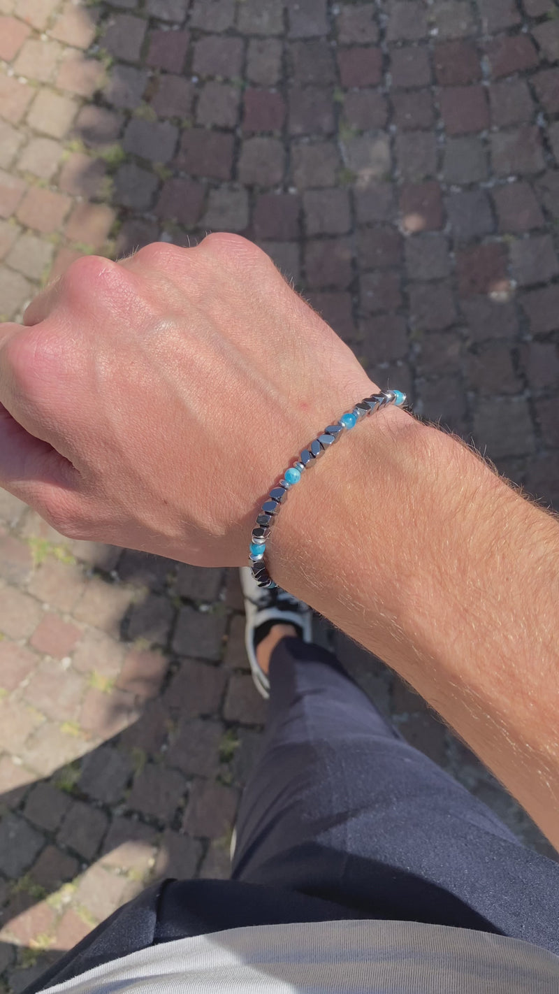 Bracciale Onda in Ematite e Apatite Blu oceano