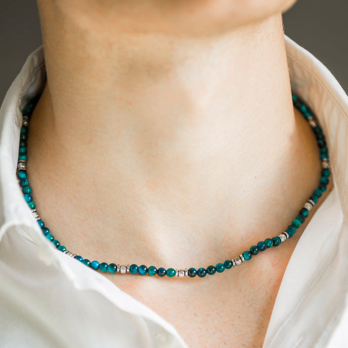 Collana Essenza in occhio di tigre azzurro