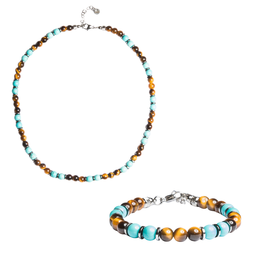 Set bracciale + collana Respiro Mediterraneo in occhio di tigre e turchese